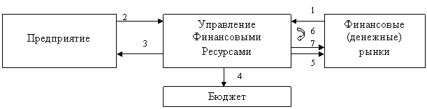 Управление финансовыми ресурсами предприятия обеспечивает увязку внутренних проблем предприятия (производственная деятельность, технологические возможности, издержки производства, прибыльность или рентабельность деятельности) с внешней финансовой средой, обеспечивающей источники финансирования деятельности предприятия. Взаимосвязь (логику) внутренних и внешних денежных потоков предприятия отражает схема, представленная на рис. 1