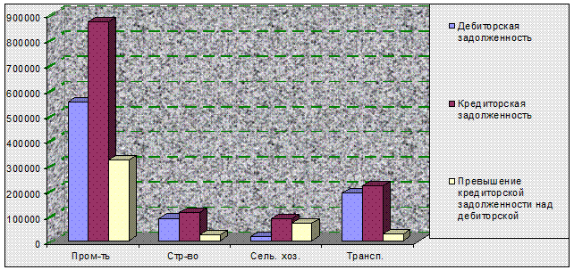 Диаграмма 1. Превышение кредиторской задолженности над дебиторской предприятий и организаций основных отраслей экономики в 1997г. (на конец года; млрд. руб.)