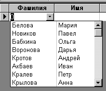 Примеры для полей Фамилия и Специальность приведены на рис.