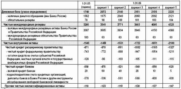 Показатели денежной программы на 2005 год (млрд. руб.)