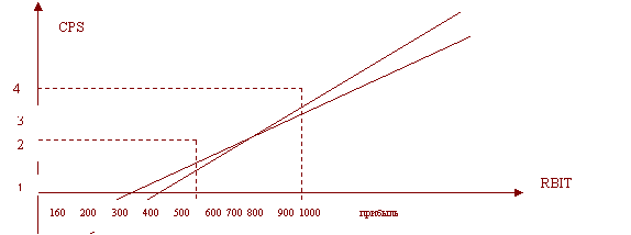 По этой модели сравнивается 2 вида финансирования: например, заемное и с помощью привилегированных акций. Точка пересечения для 2-х графиков (2-х способов финансирования) показывает уровень прибыли до выплаты налогов (в процентах). Критические точки безразличия можно рассчитать с помощью формул.