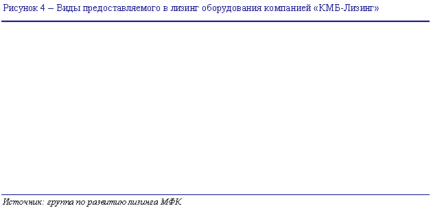 В отличии от портфеля Московской лизинговой компании и КМБ-Лизинга портфель ДельтаЛизинг содержит большую часть сделок по производственному оборудованию. На мой взгляд, это можно объяснить тем, что ДельтаЛизинг имеет больший максимальный размер лизинговой сделки. МЛК же и КМБ-Лизинг занимаются в основном лизингом грузового автотранспорта и полиграфического оборудования.