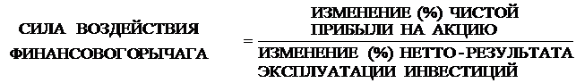 Вспомним о восприятии эффекта финансового рычага, характерного в основном для американской школы финансового менеджмента. Вот как американские экономисты рассчитывают силу воздействия финансового рычага: