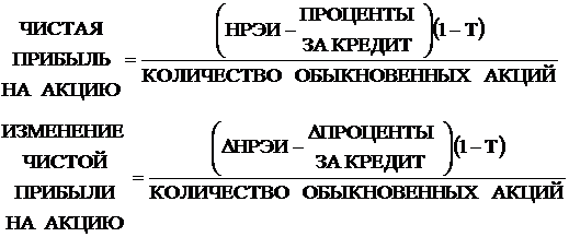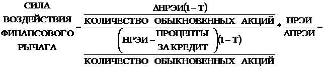 С помощью этой формулы можно ответить на вопрос, на сколько процентов изменится чистая прибыль на каждую обыкновенную акцию при изменении нетто-результата эксплуатации инвестиций на один процент.