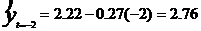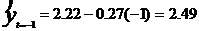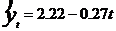 Продление в будущее тенденции, наблюдавшейся в прошлом, носит название экстраполяции во времени. Экстраполируя при t= 3, находим уровень 1995 г., равный 1,41 млн р. (2,22 - 0,27 • 3).