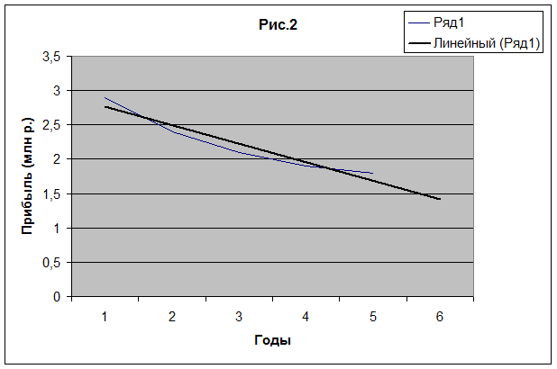 На рис. 2 графически представлена прибыль банка XYZ и основная тенденция развития явления.