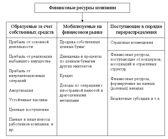 Рис. 1. Группировка финансовый ресурсов компании[4].