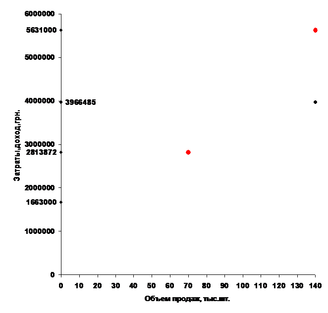 Теперь можно рассчитать критический объём сбыта продукции (точку безубыточности):