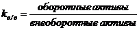 Активы организации состоят из внеоборотных и оборотных активов. Поэтому наиболее общую структуру активов характеризует коэффициент соотношения оборотных и внеоборотных активов, рассчитываемый по формуле: