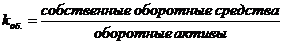 Он определяется как отношение разности между объемами источников собственных средств и фактической стоимостью основных средств и прочих внеоборотных активов (итог I раздела актива баланса) к фактической стоимости находящихся в наличии у предприятия оборотных средств в виде производственных запасов, незавершенного производства, готовой продукции, денежных средств, дебиторских задолженностей и прочих оборотных активов (итог II раздела актива баланса).