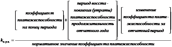 Коэффициент восстановления (утраты) платежеспособности характеризует наличие реальной возможности у предприятия восстановить либо утратить свою платежеспособность в течение определенного периода.[3]