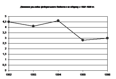 - снижением более, чем в два раза доли затрат на закупки вооружения и военной техники (с 43,7% в 1990 г. до 17,3% в 1995 г.);