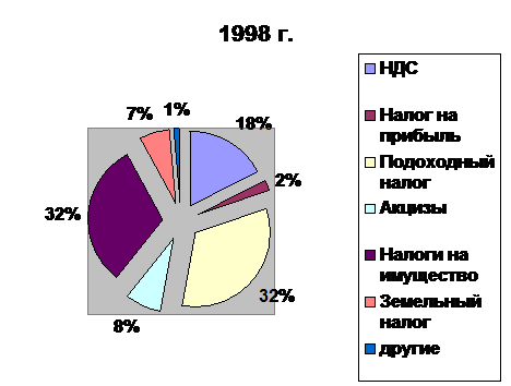 Рост поступлений акцизов в 1999 г. по сравнению с 1998 годом объясняется изменением акцизных ставок согласно Федеральному Закону от 29.12.98г. № 192-ФЗ «О первоочередных мерах в области бюджетной и налоговой политики», а также увеличением объемов производства подакцизных товаров.