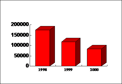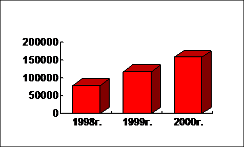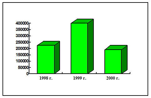 За 2000 г. в областной бюджет поступило налога на прибыль в сумме 192572 тыс. руб. (Рисунок 5), что в 34,2 % раза превышает факт 1999 г.