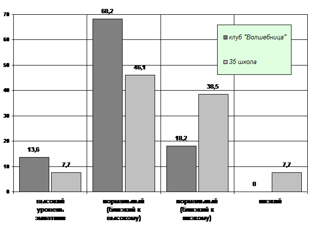 Для сопоставления результатов эта методика была проведена как и в предыдущих случаях в средней школе № 35 и в клубе волшебница. Получившиеся результаты демонстрируются на рис. 2.5 и рис. 2.6.