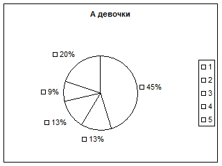 Как следует из результатов, представленных на рисунке 8 «Б», осенью ни у одной школьницы не было индекса Шаповаловой с высокой оценкой, у одной из девочек (Инны П.) он стал выше среднего, а у второй (Кати П,) – средним, это свидетельствует о некотором ухудшении функциональных возможностей их кардиореспираторной системы, что может быть обусловлено либо возросшей учебной нагрузкой, либо скорее всего, началом периода полового созревания. У 14% учениц ухудшились показатели индекса Шаповаловой осенью, по сравнению с весенними результатами, так по 7% больше стало показателей ИШ с оценкой ниже среднего и низкой соответственно.