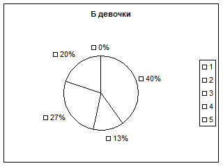 Как видно из результатов обследования, представленных на диаграмме Б рисунка №6 ни у одной из школьниц осенью не было высокого уровня показателя ИС и к тому же на 7% уменьшилось количество девочек со средней оценкой индекса Скибинского, кроме того увеличилось на 7% количество детей с низкой оценкой ИС и на 6% с оценкой выше среднего. То есть осенью у 47% девочек 11 лет наблюдались недостаточные функциональные возможности дыхательной и сердечно-сосудистой систем, что может быть обусловлено либо возросшей учебной нагрузкой и новыми условиями обучения, либо, тем что в начале подросткового периода в связи с половым созреванием замедляется рост сердца и его функциональные возможности могут временно отставать от потребностей растущего тела, также тормозиться прирост легочных объемов и естественно, функциональных возможностей дыхательной системы (Фебер Д.А. и др. 1990г).