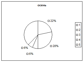 Как следует из данных, представленных на рисунке № 11, осенью на 10% снизилось количество учащихся с высокой и на 6% с выше средней оценкой ИР, что обусловлено скорее повышением учебной нагрузки и изменением условий обучения. При этом количество детей со средней оценкой ИР увеличилось на 14%, но не изменилось с низкой (6%) и ниже среднего (28%) оценками ИР, следовательно у 32% обследованных учащихся и весной и осенью наблюдались низкий уровень адаптационных резервов кардиореспираторной системы, что лимитирует физические возможности организма детей. Таким учащимся мы посоветовали больше времени уделять физическим упражнениям. Соматическая, правильно организованная тренировка, улучшает физическую ССС, улучшает реакцию кардиореспираторной системы на мышечную работу, расширяет возможности детского организма. С лечебной целью использовать плавание, которое значительно улучшает не только деятельность ССС, но и дыхательной системы, увеличивая объем легких, экскурсию грудной клетки, величину жизненной емкости легких.