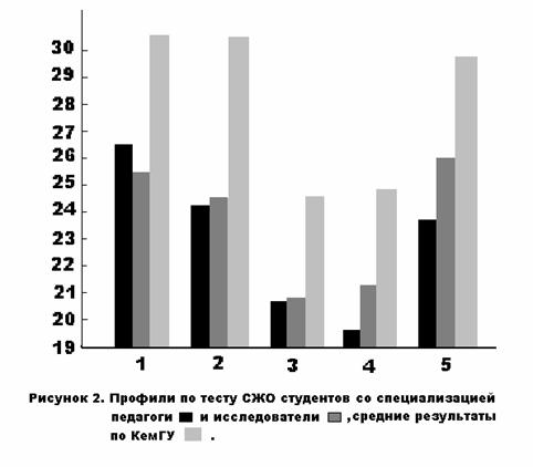 Следует отметить, что показатели осмысленности жизни у студентов третьего курса химического факультета ниже чем показатели осмысленности жизни у студентов третьих курсов КемГУ. Из этого можно сделать вывод, что студенты химического факультета не ставят перед собой конкретных целей, предпочитают “плыть по течению”, не видят перспектив реализации своих профессиональных навыков, полученных в процессе обучения.