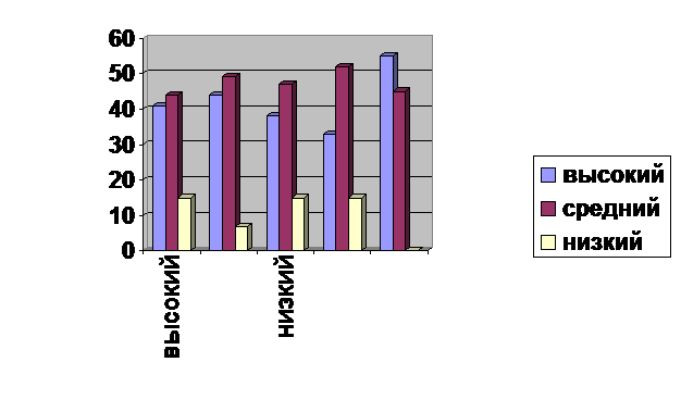 | Высокий | 17 | 41 | 17 | 44 | 13 | 38 | 7 | 33 | 6 | 55 | 60 | 41 |