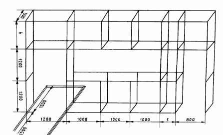 Так как ширина помещения может быть разной даже при одном и том же типовом проекте, то это различие компенсируется расстоянием между третьей и четвертой рамками (если вести счет слева направо). Вторая и третья рамки размещаются так, что пазы вертикальных стоек обращены друг к другу. Горизонтальная связка на высоте 1200 мм между второй и третьей рамками со стороны кабинета не должна перекрывать плоскость, образованную пазами. Дело в том, что в пазах вертикальных стоек размешается и перемещается по вертикали магнитная доска-экран.