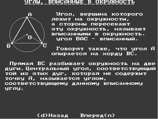 И последним на странице дается определение градусной меры дуги окружности (рис. 57). Клавишей “n” осуществляется переход к следующей странице.