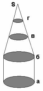 в) сечение конуса плоскостью, перпендикулярно оси симметрии – круг