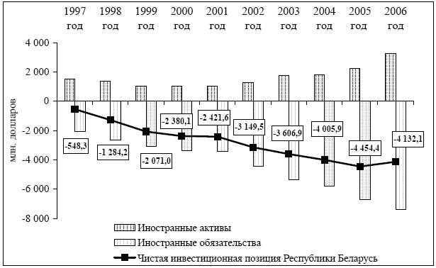 Отрицательная инвестиционная позиция Республики Беларусь говорит о том, что внешние обязательства превышают активы, и что страна является «чистым должником» перед внешним миром.