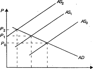 Цены опять поднимаются по сравнению с прежними (Р2 – Р0), объем производства уменьшается (q2 – q1) за период борьбы с безработицей, что лишь усугубляет проблему.