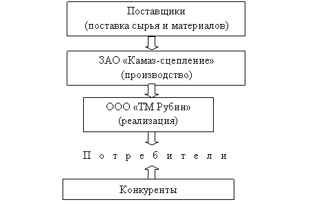 Товарную продукцию с 5% нормой прибыли ЗАО «Камаз-сцепление» реализует ООО «ТМ Рубин». Дальнейшее продвижение продукции, изучение и анализ рынка сбыта осуществляет также ООО «ТМ Рубин»