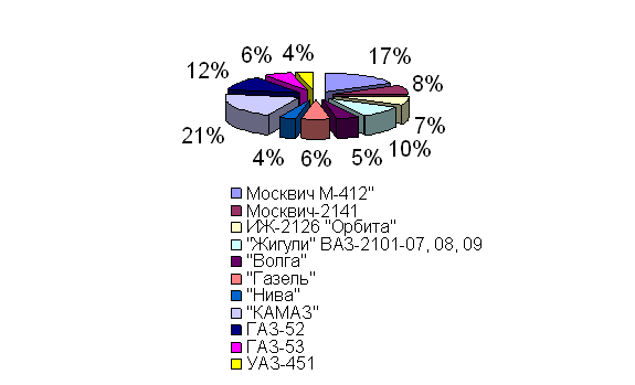 Рис.1.4 Выпуск отдельных видов дисков сцепления в общем ассортименте выпускаемой продукции
