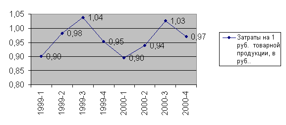 Рис. 2.1 Динамика затрат на 1 руб. продукции