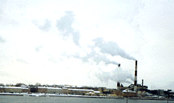 В городах воздух очень сильно загрязняют вредные выбросы промышленных предприятий.