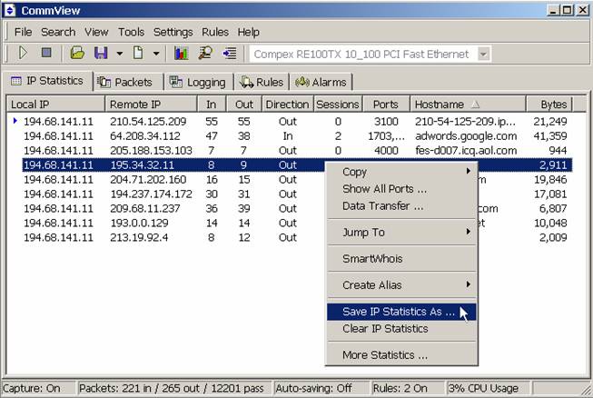 CommView. Сетевой монитор и анализатор для MS Windows.