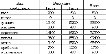 Ввоз определяется как разность прибытия и местного сообщения, вывоз как разность отправления и местного сообщения. Местное сообщение определяется по результатам решения транспортной задачи.