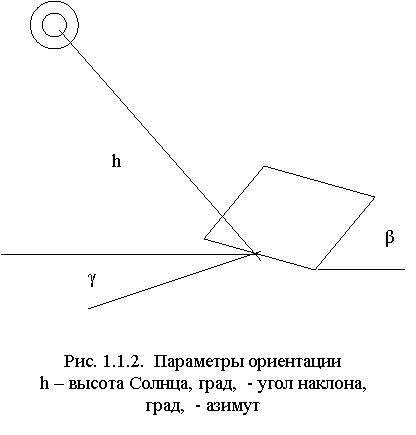 Отметим, что мощность солнечного излучения, падающего на единичную площадку сориентированную каким-либо образом, зависит от ориентации этой площадки. Для ориентации единичной площадки введем следующие параметры (рис. 1.2):