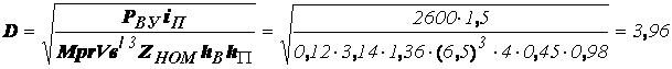 Для этого диапазона Vв = 6,5 м/с, iп = 1,5.