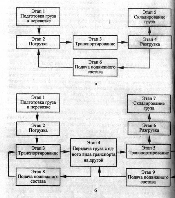 Рис.2 Технологические схемы процесса перевозки грузов:
