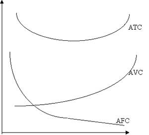 Графически средние издержки изображаются суммированием кривых средних постоянных и средних переменных издержек и имеют U-образную форму.(рис)