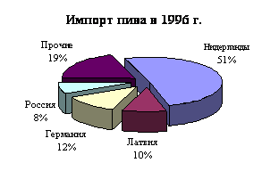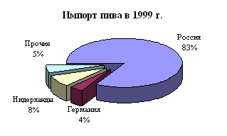 В 2002 году в Казахстане было произведено около 21,5 миллиона дал пива (рис. 1.3). В денежном же выражении, если ориентироваться на среднюю розничную цену бутылки пива, объем рынка будет исчисляться цифрой, близкой к 42 миллиардам тенге. Из них на отечественное пиво приходится около 33 миллиардов тенге. По мнению представителей Союза пивоваров Казахстана, сегодня мы используем наш промышленный потенциал лишь на 23 %, а увеличение производства пива смогло бы ежегодно привносить в государственный бюджет до 9 миллиардов тенге.