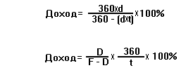 Доход на коммерческие бумаги может быть вычислен по одной из следующих формул: