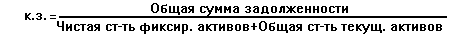 При анализе кредитоспособности можно пользоваться еще одним показателем - коэффициентом задолженности (к.з.). Он фиксирует ту часть общей стоимости активов компании, которая финансируется за счет кредита.