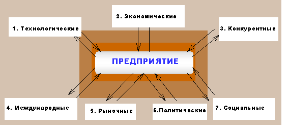 Угрозы и возможности, с которыми сталкивается предприятие, обычно можно выделить в семь областей (Рис.3).