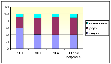 (рост на 12%), химической и нефтехимической (рост на 9%), цветной металлургии (тот же объем, что и в прошлом году) и топливной промышленности (падение производства всего на 2%). Впервые за последние годы наметился рост производства некоторых, пока еще немногочисленных, видов продукции машиностроения. Темпы падения производства потребительских товаров замедлились более чем в 2 раза (с 29 до 13 4) по равнению с 1994 г., но были выше, чем в 1993 г. Особенно сильно упал выпуск продукции в легкой промышленности – на 38%, в пищевой – на 10%. На 10% обратилось производство и в лесной, деревообрабатывающей и целлюлозно-бумажной промышленности. Продолжалось разрушение многих наукоемких производств: например, выпуск станков с ЧПУ в очередной более чем в 2 раза. Наметившиеся позитивные сдвиги пока не глубоких и прочных корней. Внешний спрос вряд может служить достаточной основой для восстановления промышленного роста в России. Емкость рынка по тем товарам, которые может поставлять сия, далеко не безгранична и подвержена.