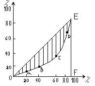В реальности фактическое распределение дохода показано линией OABCDE. Чем больше отклоняется эта линия, или кривая Лоренца, от линии OE, тем больше неравенство в распределении доходов. Если мы разделим заштрихованную площадь треугольника OFE, то получим показатель, отражающий степень неравенства в распределении доходов.