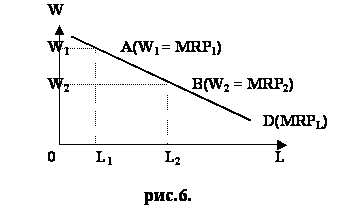 Кривая спроса на труд со стороны руководителя фирмы есть кривая предельной производительности труда MRPL по его цене W.