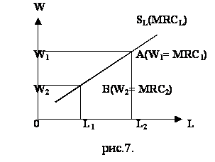 В экономическом смысле кривая предложения труда SL - кривая предельных издержек труда MRCL.