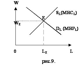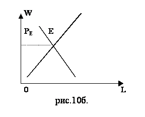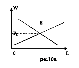 Точке Е на графике рис.9. соответствует определенный уровень реальной заработной платы и заданное этим уровнем предложение труда. В точке Е спрос на труд равен предложению труда, т.е. рынок труда находится в равновесном состоянии. Это означает, что все предприниматели, согласны платить заработную плату, находят на рынке необходимое количество труда, их спрос на труд удовлетворен полностью. В положении рыночного равновесия полностью трудоустроены все работники, готовые предложить свои услуги при заработной плате WE. Поэтому точка Е определяет положение полной занятости. При любых других условиях заработной платы, отличных от WE, равновесие на рынке труда нарушается. Заработная плата - это цена равновесия на рынке труда.