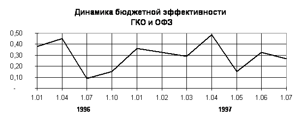 Доля ОФЗ-ПК и ОФЗ-ПД неуклонно повышалась в 1997 г. Был заметен высокий инвестиционный спрос как на аукционах, так и на вторичном рынке.
