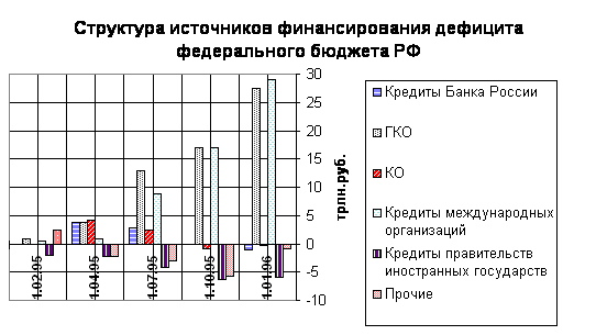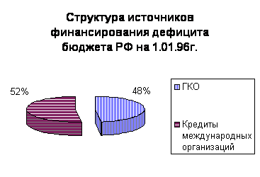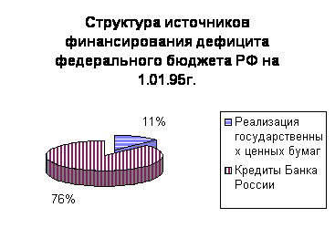 Дефицит федерального бюджета РФ на 1997 год был утвержден в размере 78,5 трлн. руб. или 8,1 % к ВВП. Предельный размер дефицита федерального бюджета законом РФ “О федеральном бюджете на 1997 год” установлен в размере 22,5 % от суммы расходов. В 1995 году впервые дефицит бюджета должен был быть покрыт за счет неинфляционных источников: международных займов и внутренних заимствований на рынке